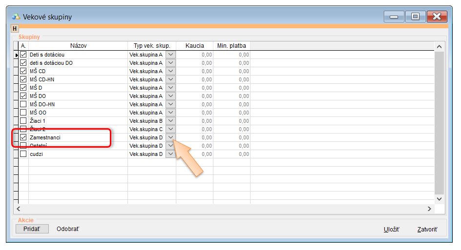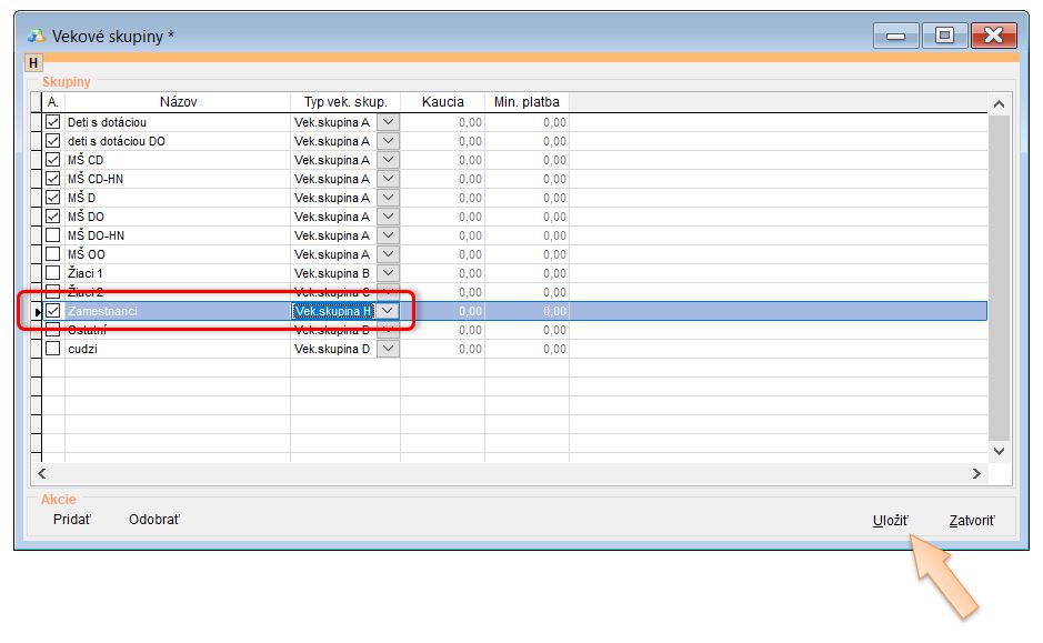 - Upraviť Vekovú skupinu pre dospelých stravníkov. (Nastavenia - Vekové skupiny - nastavenie vek. skupiny H pre dospelých a cudzích stravníkov.)