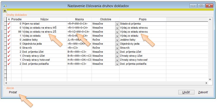 - Zmeny potvrdíte kliknutím na tlačidlo Uložiť. (Ďalšie informácie o Druhoch jedál sa dozviete v článku Druhy jedál.)