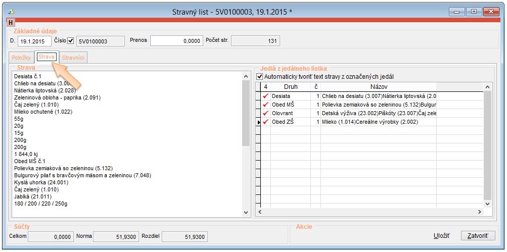 - Vytvorenie stravného listu potvrdíte kliknutím na tlačidlo Uložiť.