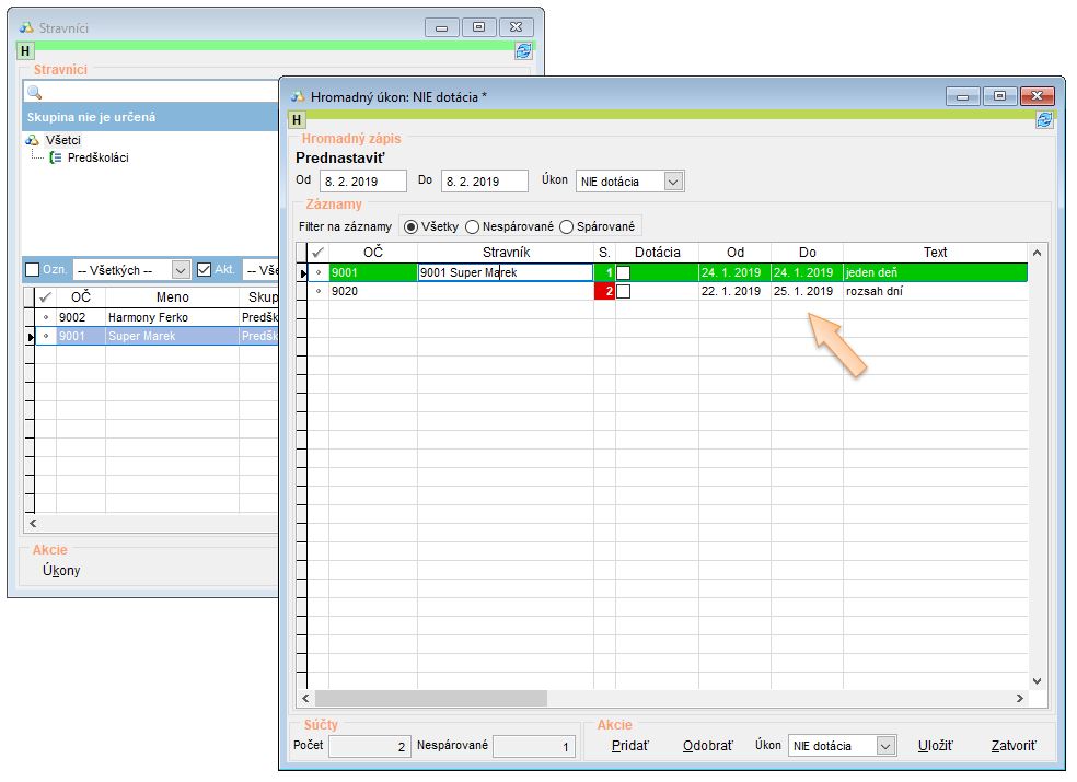- Pri následnom importe a nastavení NIE dotácia je vybraným stravníkom zrušený nárok na dotáciu.