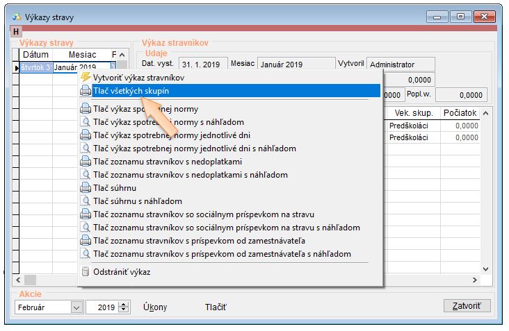 - Kliknite na tlačidlo Úkony - Tlač všetkých skupín.