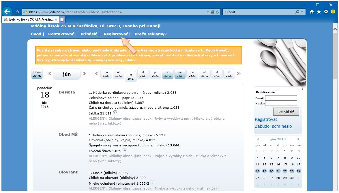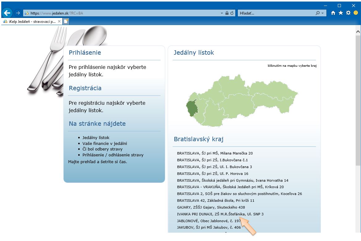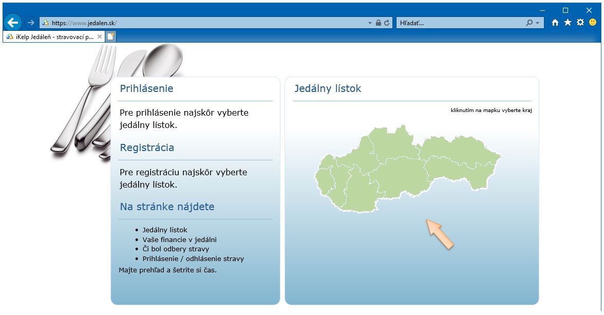 • Spustite internetový prehliadač a otvorte si stránku www.jedalen.sk.