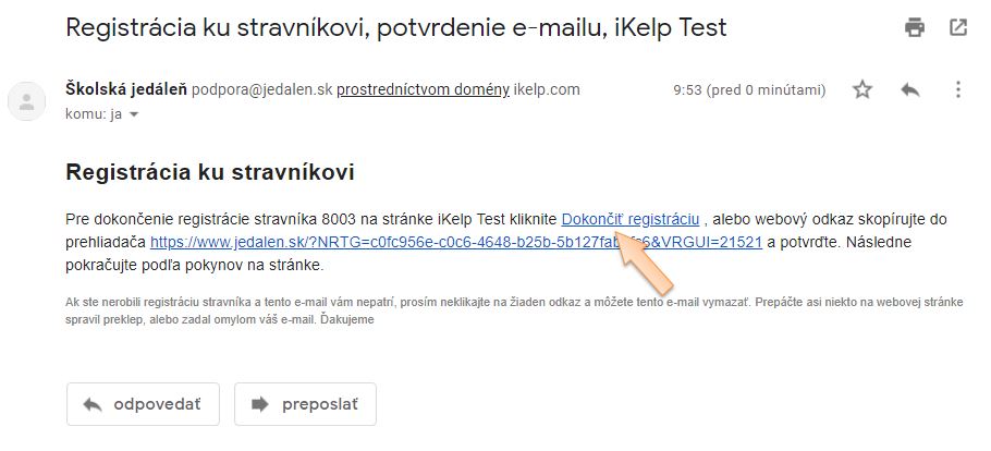 • Pre dokončenie registrácie kliknite v správe na odkaz Dokončiť registráciu.