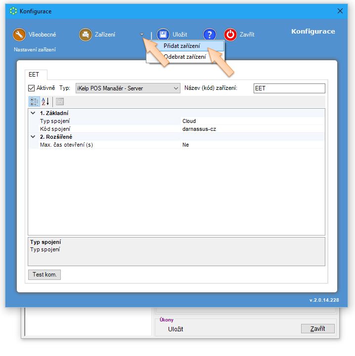 Komunikační parametry se zařízením, je potřebné nastavit v aplikaci iKelp POS Manažer.