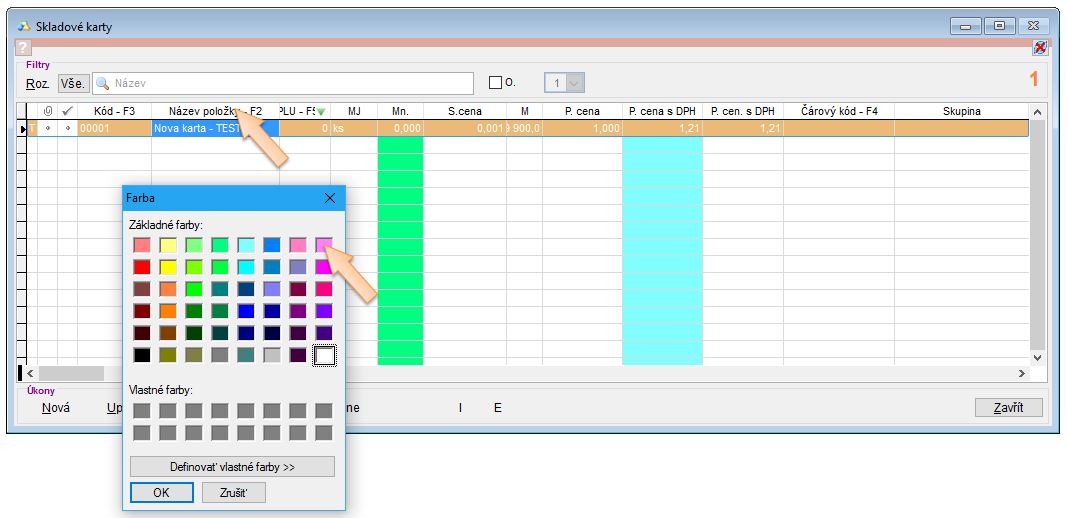 Při kliknutí na název některého ze sloupců pravým tlačítkem myši se zobrazí paleta barev a je možné si tak nadefinovat barvu daného sloupce.
