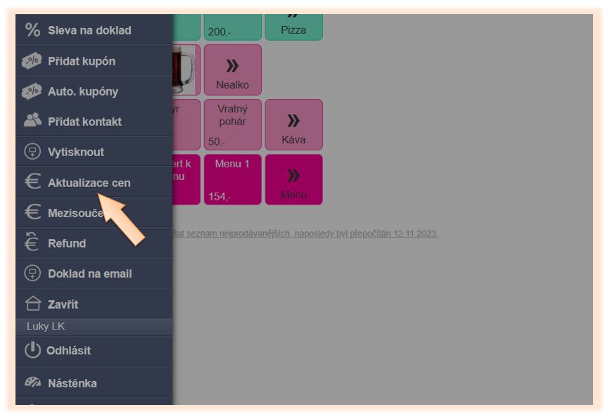 V případě potřeby je možné aktualizaci cen vyvolat i manuálně po kliknutí v menu na možnost Přepočet cen.
