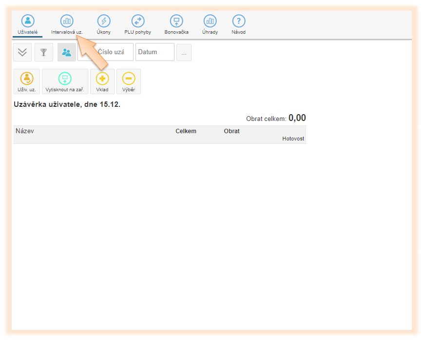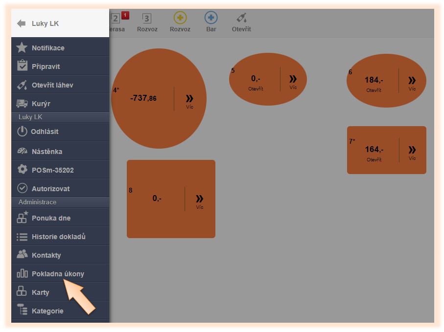 - Klikněte v menu aplikace na Pokladní úkony.