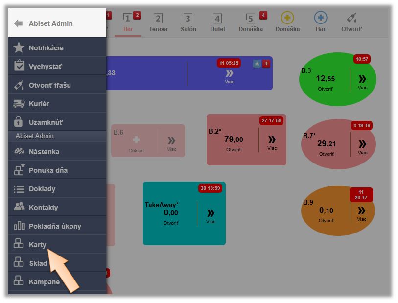 - Kliknite v menu na Karty a vyberte možnosť Kategórie.