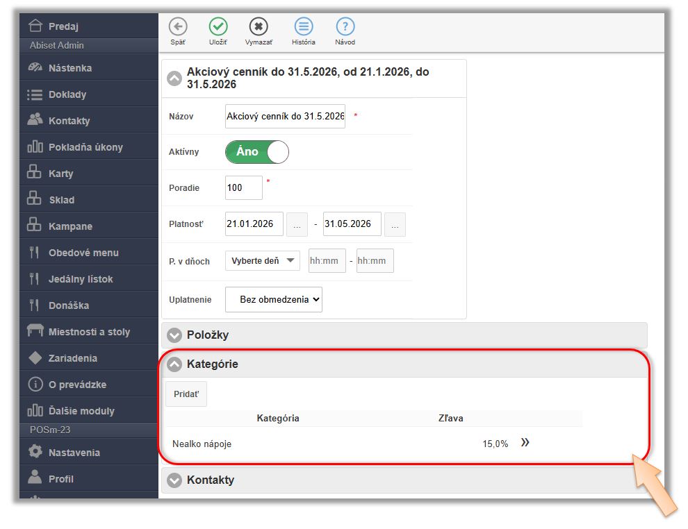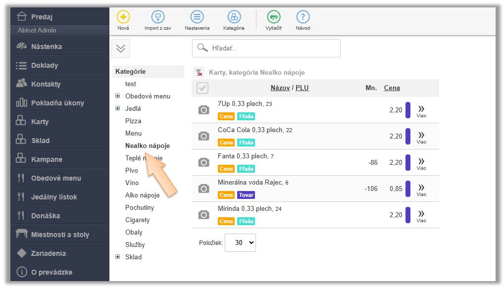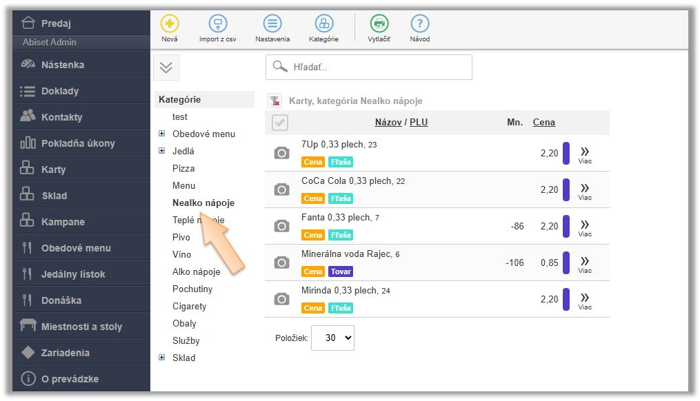 5. Kliknite na tlačidlo Cenovky.