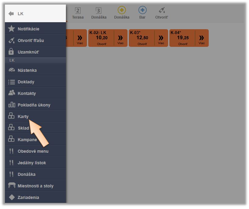 1. Kliknite na možnosť Karty v menu aplikácie.