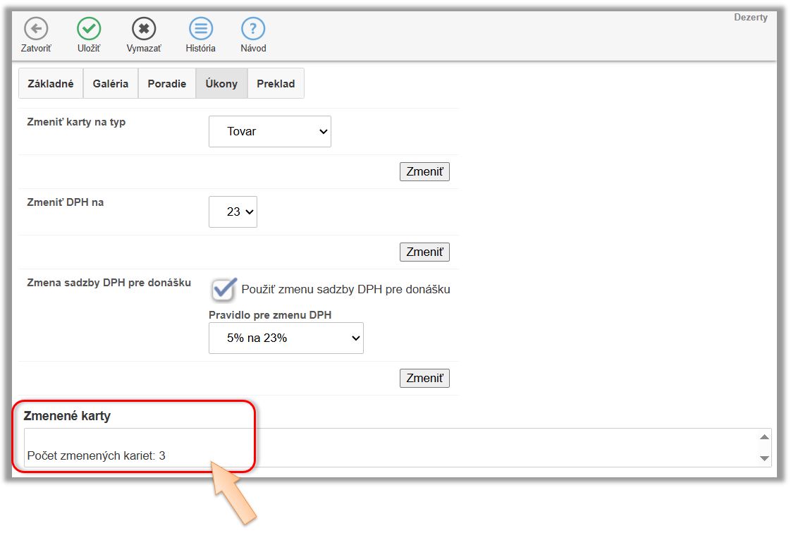 To s akou DPH boli jednotlivé doklady účtované, je možné zobraziť v zozname dokladov, v detaile daného dokladu. Ak potrebujete mať prehľad o tom, v akej sadzbe DPH boli doklady účtované za určité obdobie, je túto informáciu možné zobraziť v časti Pokladňa úkony.