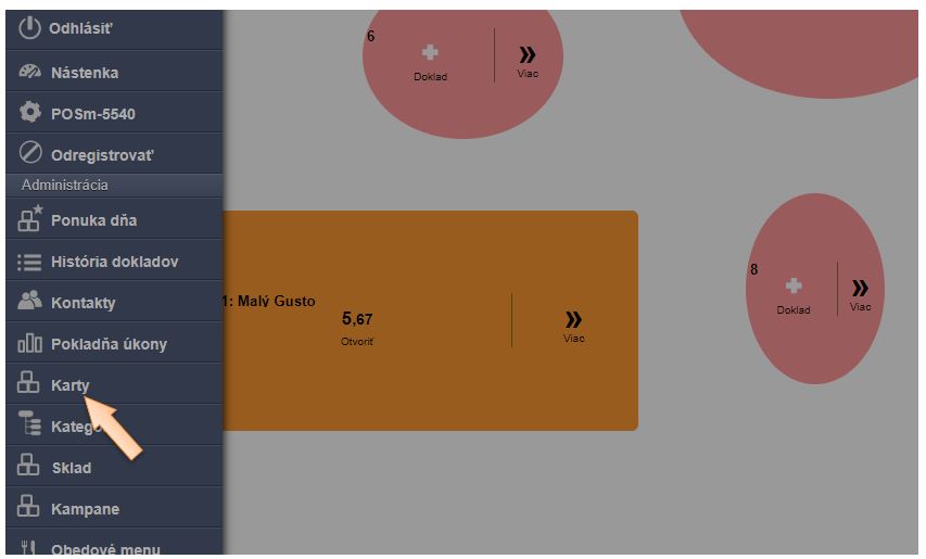 2. Z ponuky vyberte možnosť Karty.