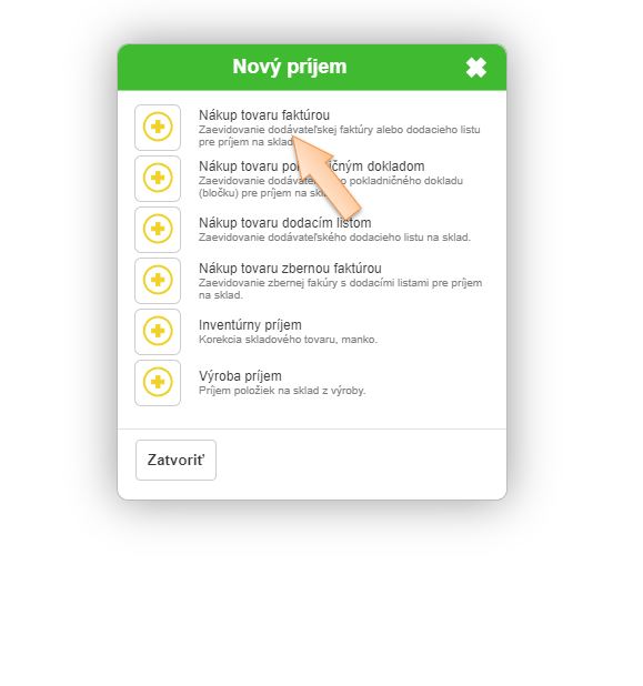 2. Kliknutím na + Príjemka vytvoríte nový príjem.