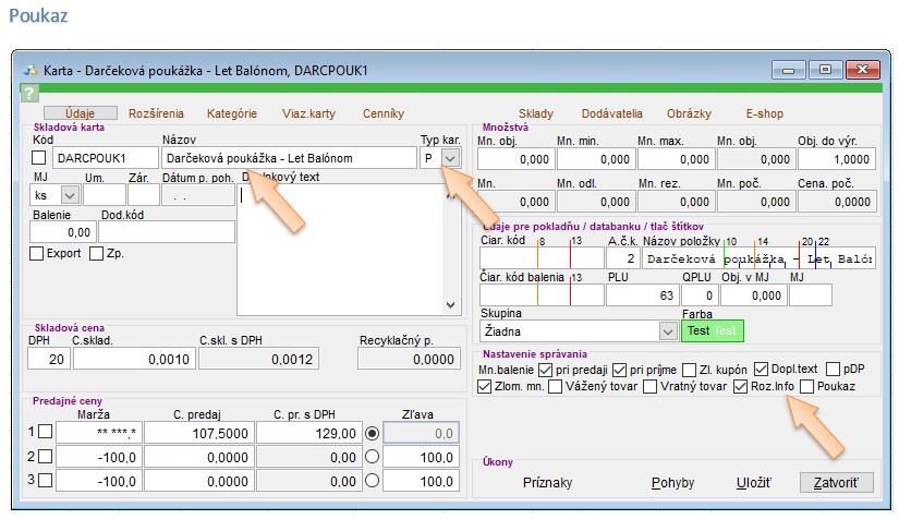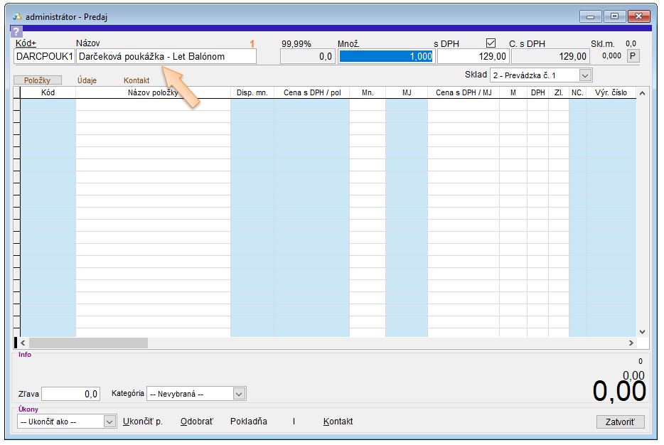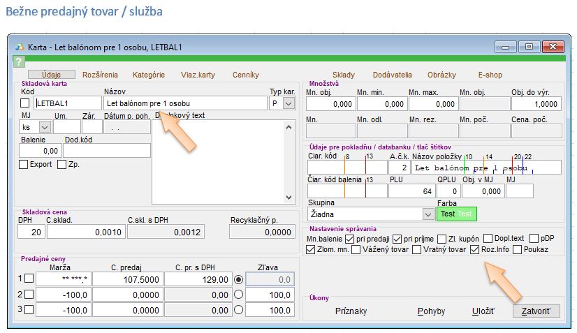 - Bežne predajný tovar / služba - druhá karta pre daný tovar / službu, ktorá môže byť predávaná samostatne, alebo môže byť na ňu uplatnený poukaz.