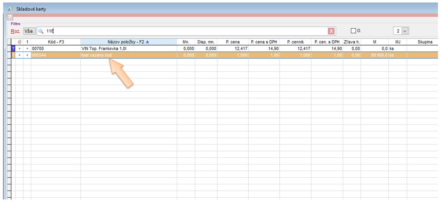 - 0022 - štvormiestny kód položky (PLU definované na skladovej karte.).