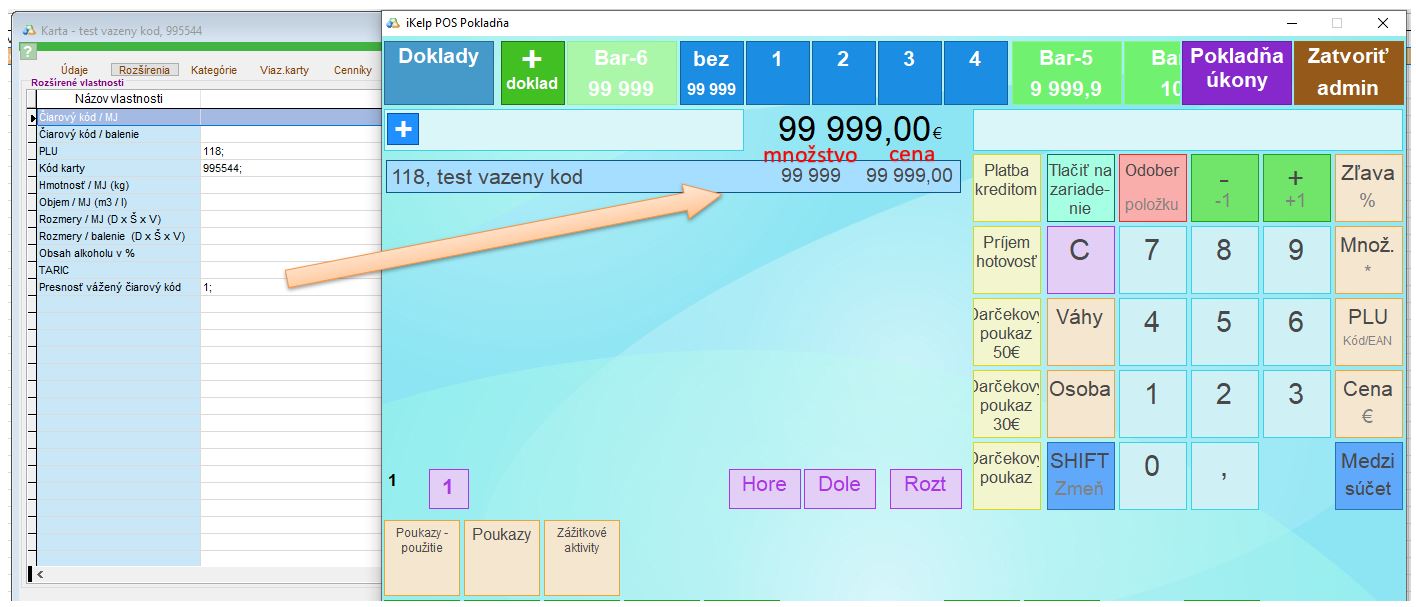 - EAN kódu v ktorom je PLU + množstvo ho aplikácia interpretuje ako množstvo s presnosťou na 3 desatinné miesta. Aplikácia ho interpretuje ako množstvo s hodnotou napr. 99,999 (teda s presnosťou na 3 desatinné miesta).