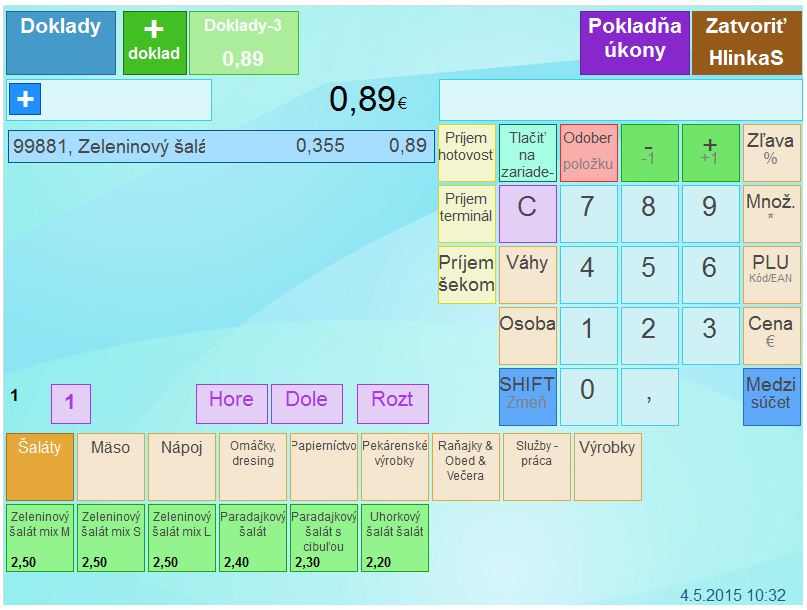 - Vyberte v predaji skladovú kartu z ponuky, alebo ju naúčtujte pomocou PLU.
