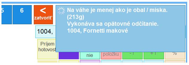 - Z celkovej hmotnosti sa automaticky po naúčtovaní položky odčíta hmotnosť obalu / misky.