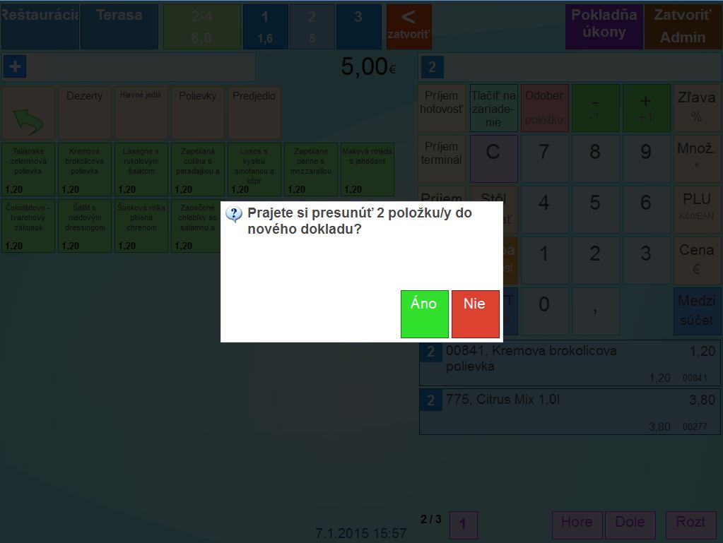 Takto vytvorený doklad je následne možné presunúť na iný stôl a túto situáciu popisuje článok Dotykový predaj - Presun účtu na iný stôl.