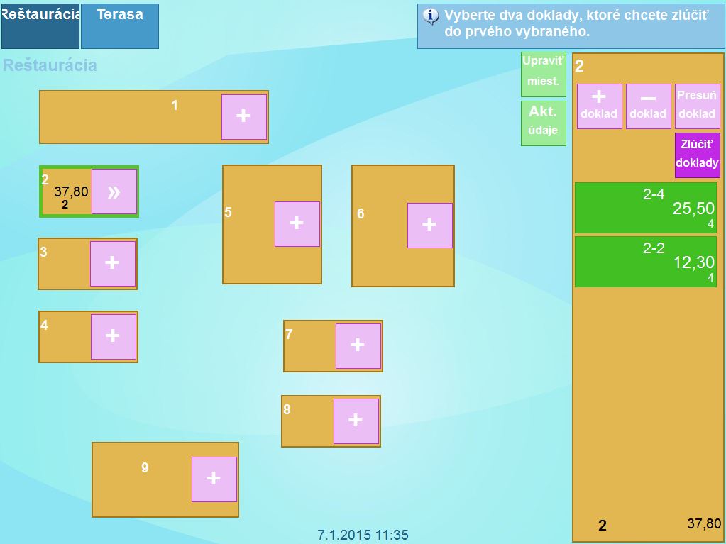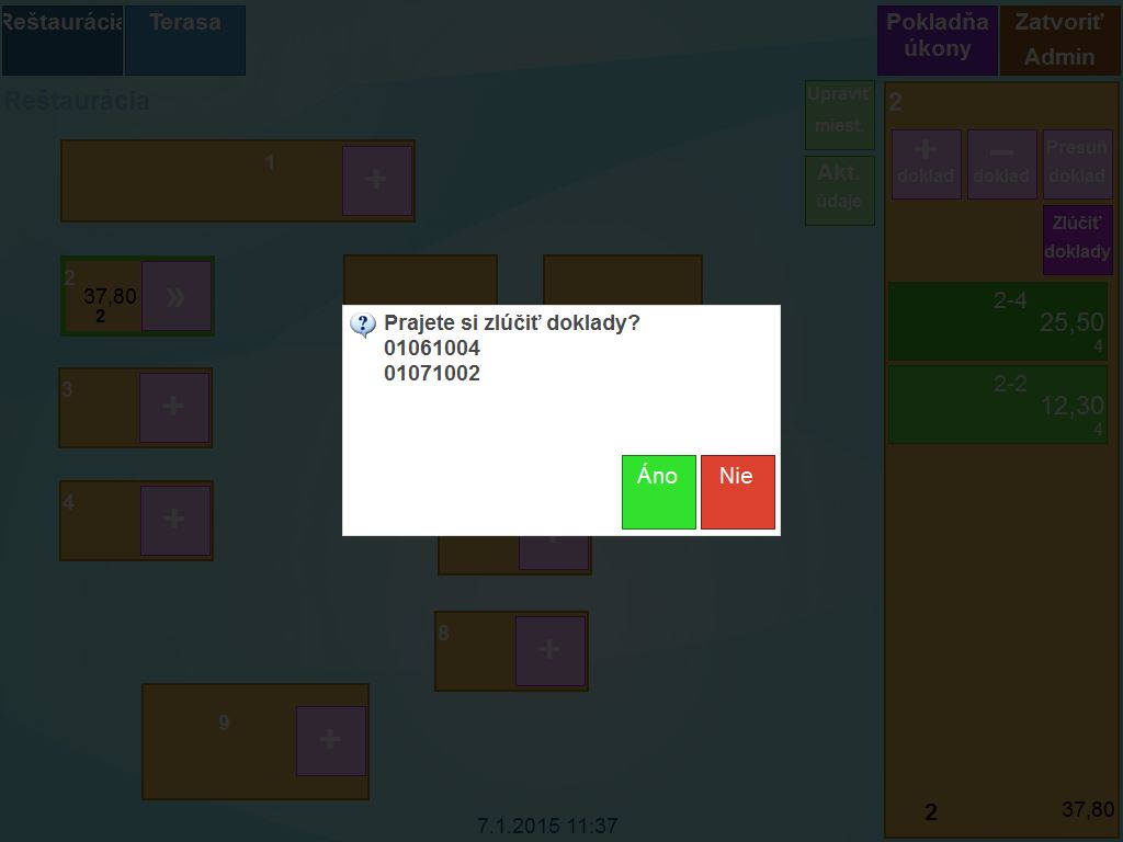 Dotykový predaj - Zlúčenie dokladov (otvorených účtov)