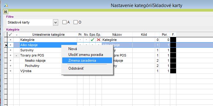 - Vykonané zmeny potvrdíte kliknutím pravým tlačidlom myši na niektorú z kategórií a z ponuky vyberte možnosť "Uložiť zmenu poradia".