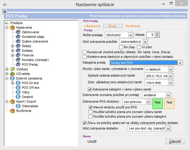 - V ľavej časti v strome jednotlivých nastavení vyberte možnosť POS Predaj -> záložka Tovar -> Kategória predaj a zo zozmanu vyberte kategóriu s názvom "Tovary pre POS".