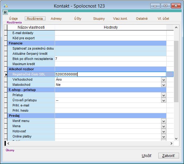Pozor, je potrebné jednoznačne nastaviť či sa jedná alebo nejedná o veľkoobchod alebo maloobchod nastavením vlastnosti ANO, alebo NIE! Rovnako ako pri skladových kartách aj tu je potrebné údaje vyplniť správne, kde zle uvedené registračné číslo môže mať za následok kontrolu kontrolným orgánom a prípadné udelenie pokuty.