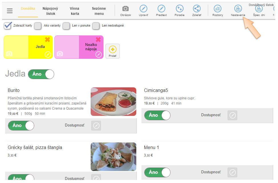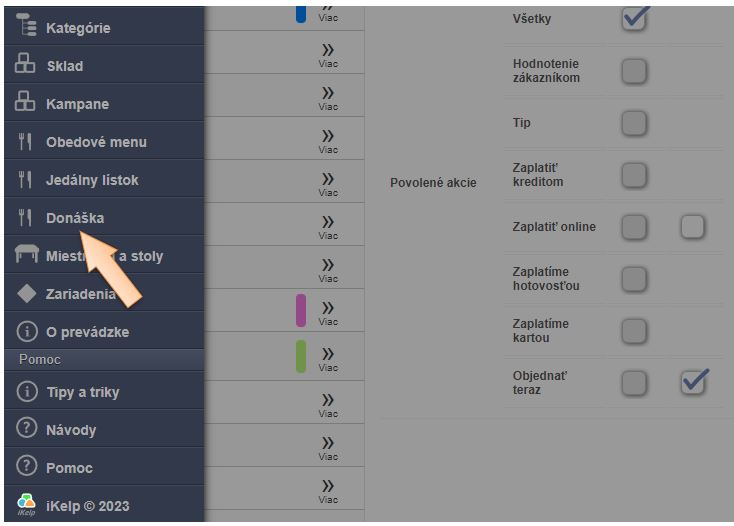 - Kliknite na miestnosť Donáška. (Miestnosť je možné si premenovať podľa potreby, napr. na Bufet.)