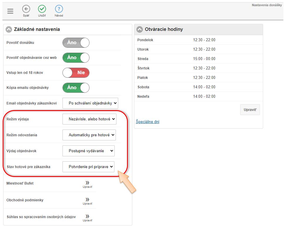 V prvom kroku je potrebné nastaviť správanie aplikácie pri vytváraní novej objednávky a jej následnej správe. Správanie je potrebné nadefinovať na konkrétnej miestnosti, v ktorej budú objednávky vznikať a ale aj správanie samotného systému musí byť nastavené tak aby celý proces fungoval správne.