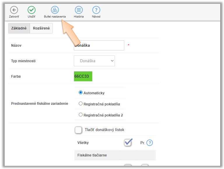 2. Otvorte na úpravu miestnosť Donáška. (Názov miestnosti je možné zmeniť na Bufet.)