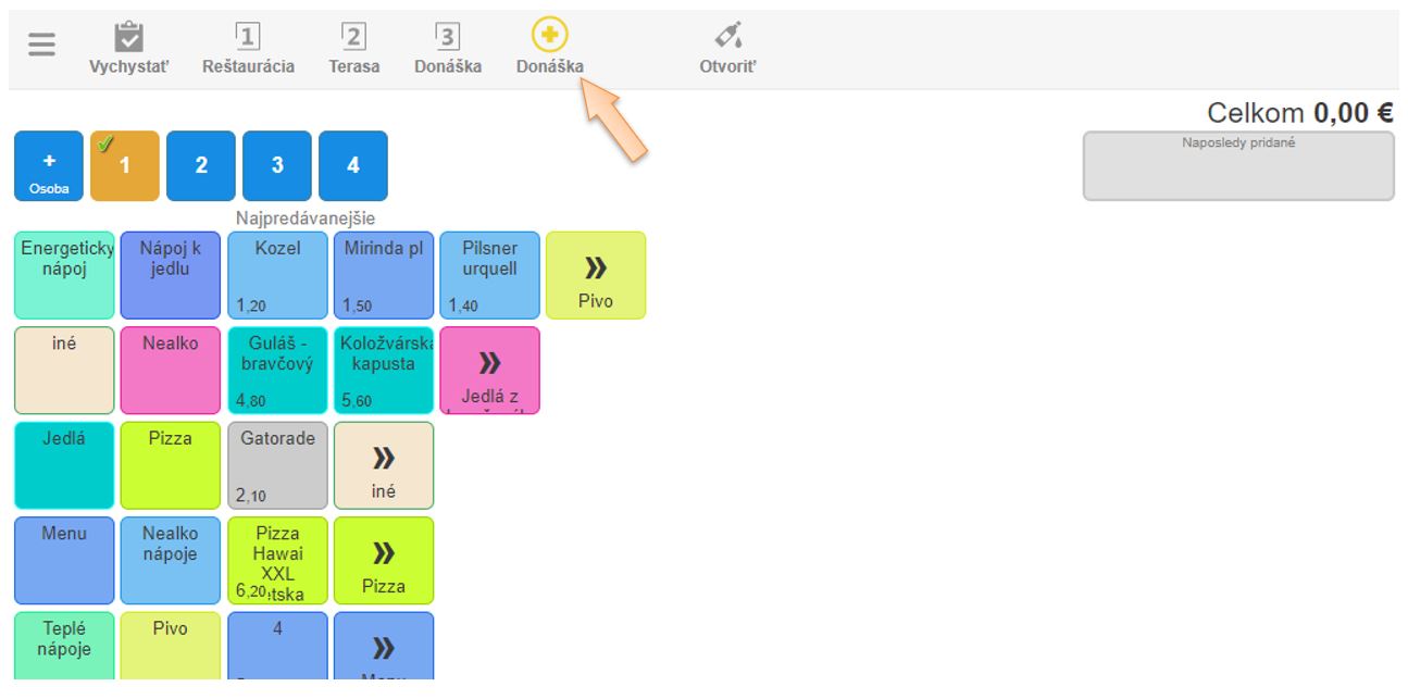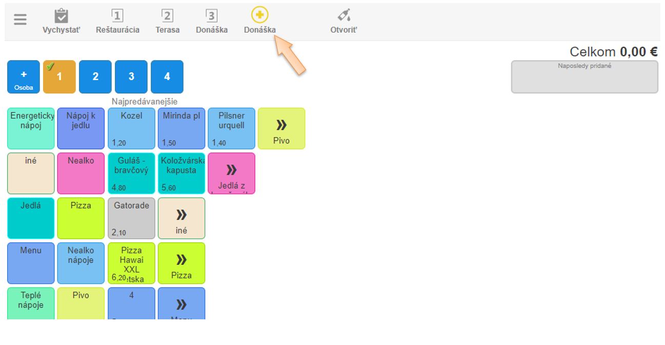V tomto návode vám predstavíme režim rýchleho účtovania donáškových objednávok, ale aj objednávok vo Fasfood alebo bufetových prevádzkach. Aplikácia vám ponúka možnosť rýchleho účtovania, čo je vhodné pre rýchle obslúženie zákazníka. Ak si zákazník kupuje tovar a hneď ho platí, nie je potrebné vyberať stôl a vytvárať na ňom nový doklad. Aj po následnom vyúčtovaní je možné okamžite pridávať ďalšie položky do otvoreného dokladu. Takto je možné označiť akýkoľvek stôl alebo donáškovú miestnosť a tým sa urýchli obsluha. V prípade bufetových, alebo Fastfoodových prevádzok sa na tento účel využíva práve miestnosť Donáška.