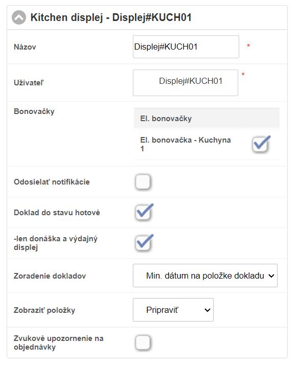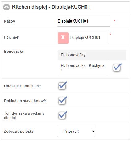 Po aktivovaní zariadenia - Kitchen displej, je možné si zariadenie nakonfigurovať.