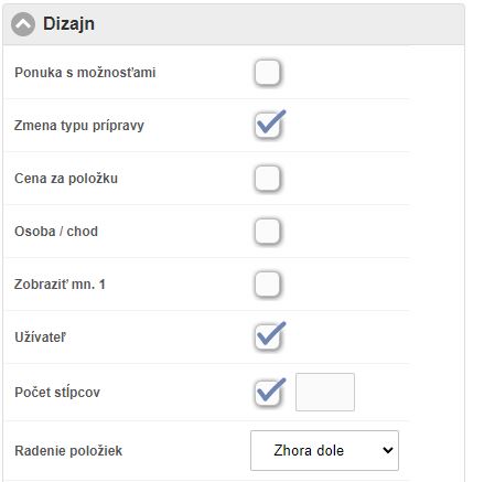 • Osoba / chod - rozdeľovať položky podľa osôb / chodov.