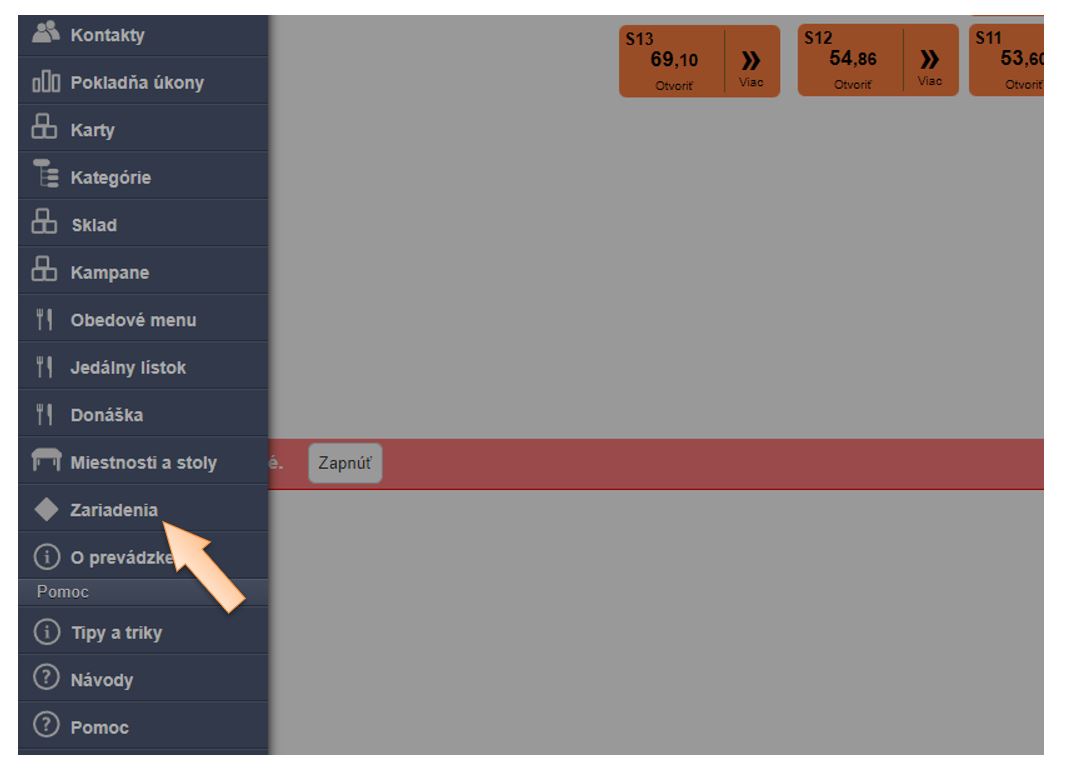 1. Kliknite v menu aplikácie na možnosť Zariadenia.