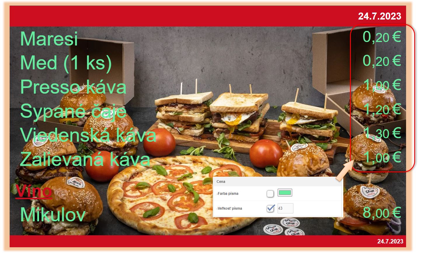 - Veľkosť písma - veľkosť písma ceny.
