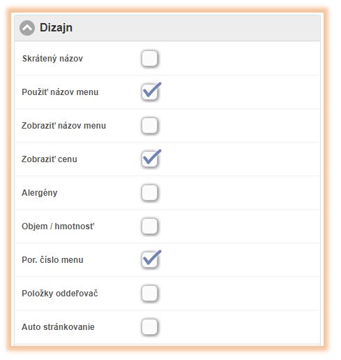 - Por. číslo menu - pre menu zobrazovať poradové číslo položky.