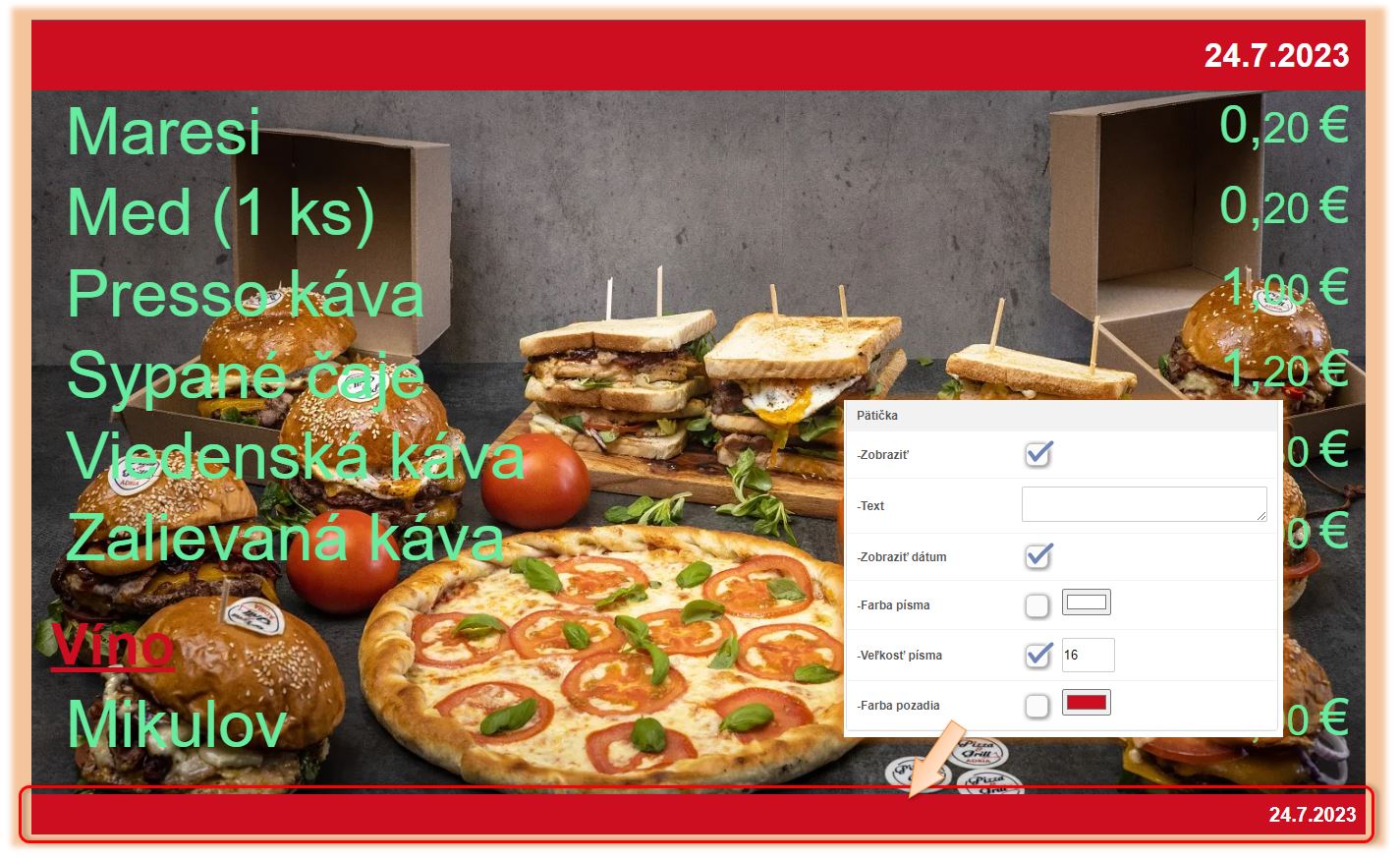 - Text - text, ktorý sa má v pätičke zobrazovať.
