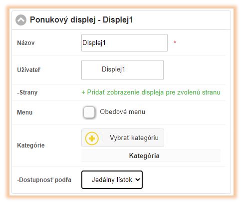 Ponukový displej - nastavenia