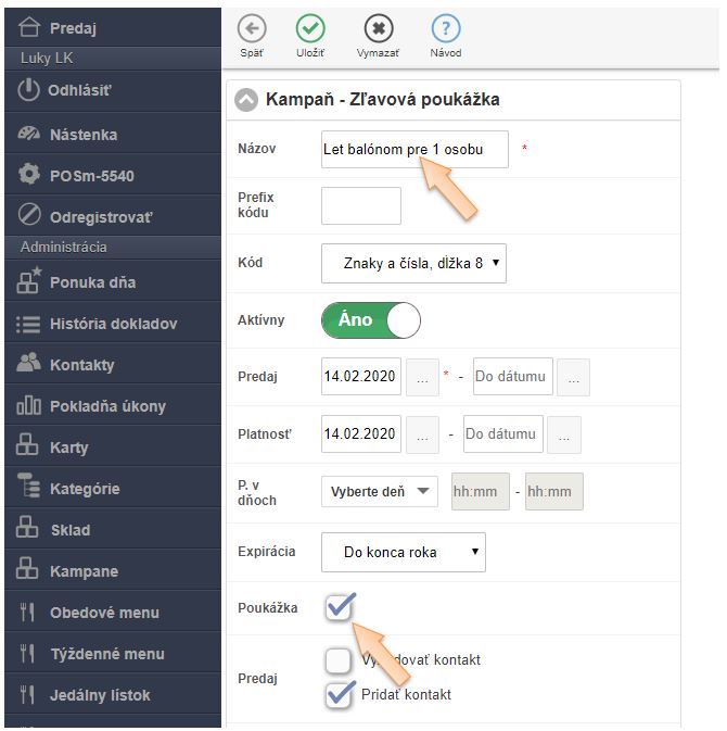 - Po predaji poukazu sa automaticky v danej kampani vygeneruje poukaz s kódom.