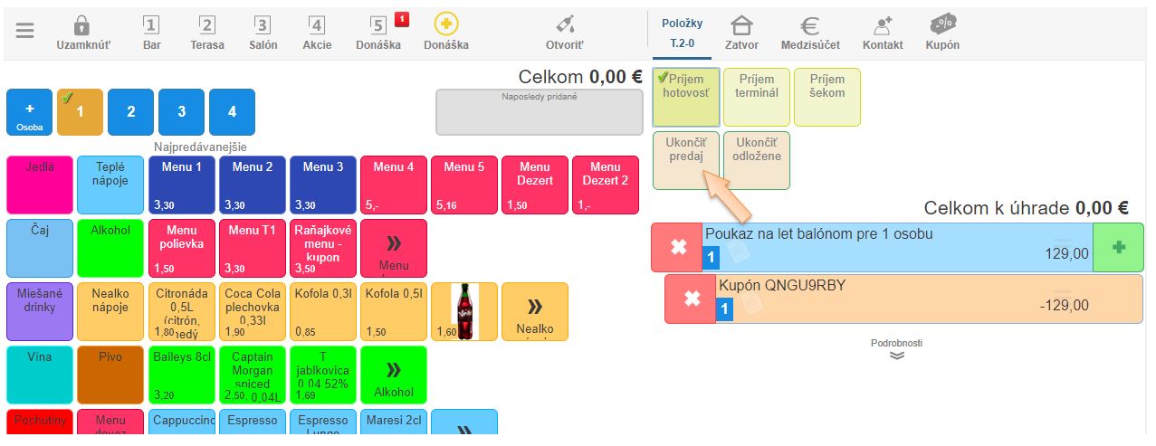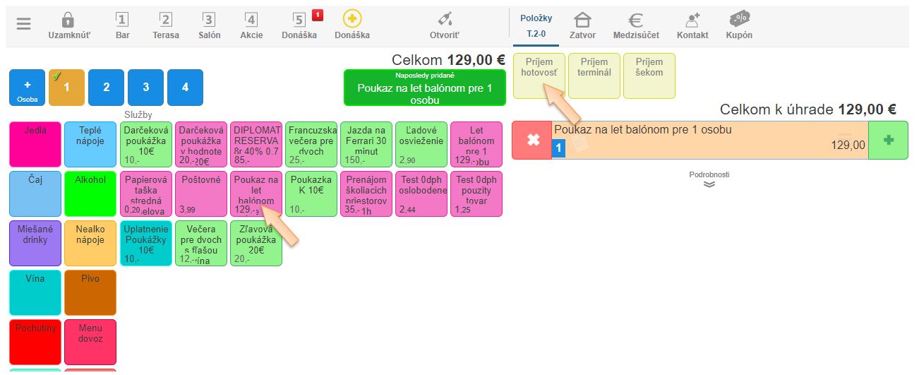 - Ukončite doklad príslušným platidlom.