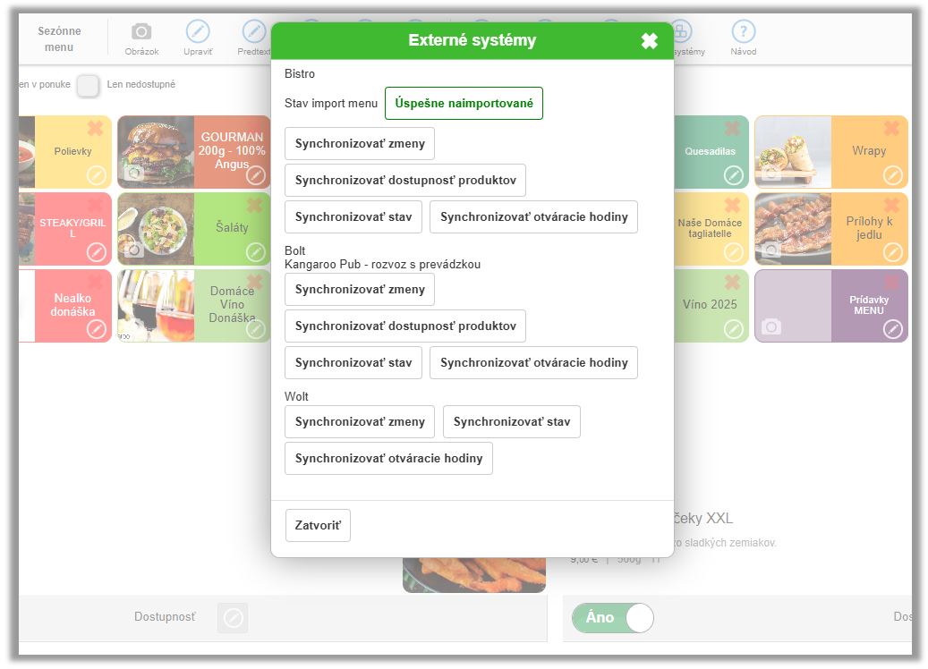 - Synchronizovať stav - synchronizovať stav otvorenia prevádzky, či je otvorené alebo zatvorené.
