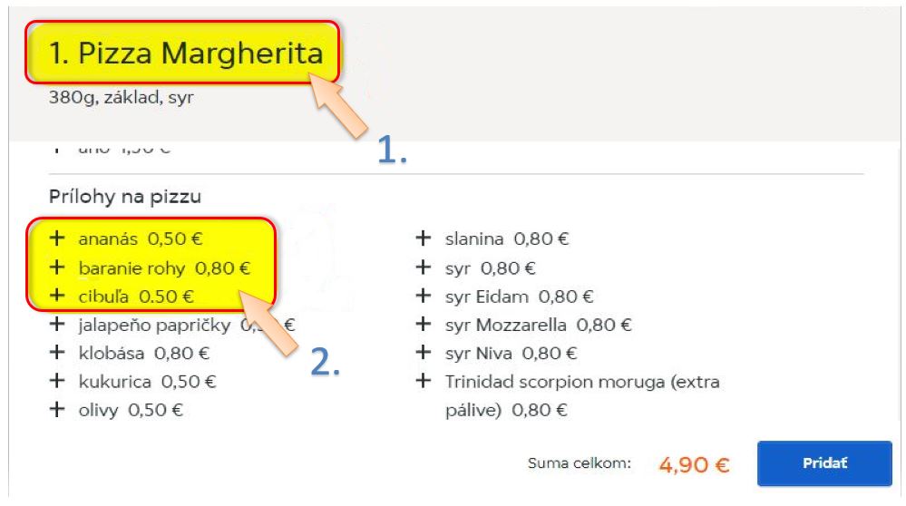 - Bistro ID => Hlavný produkt => Pizza Margherita