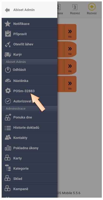 - V menu kliknite na nastavenia zariadenia POSm-xxx.