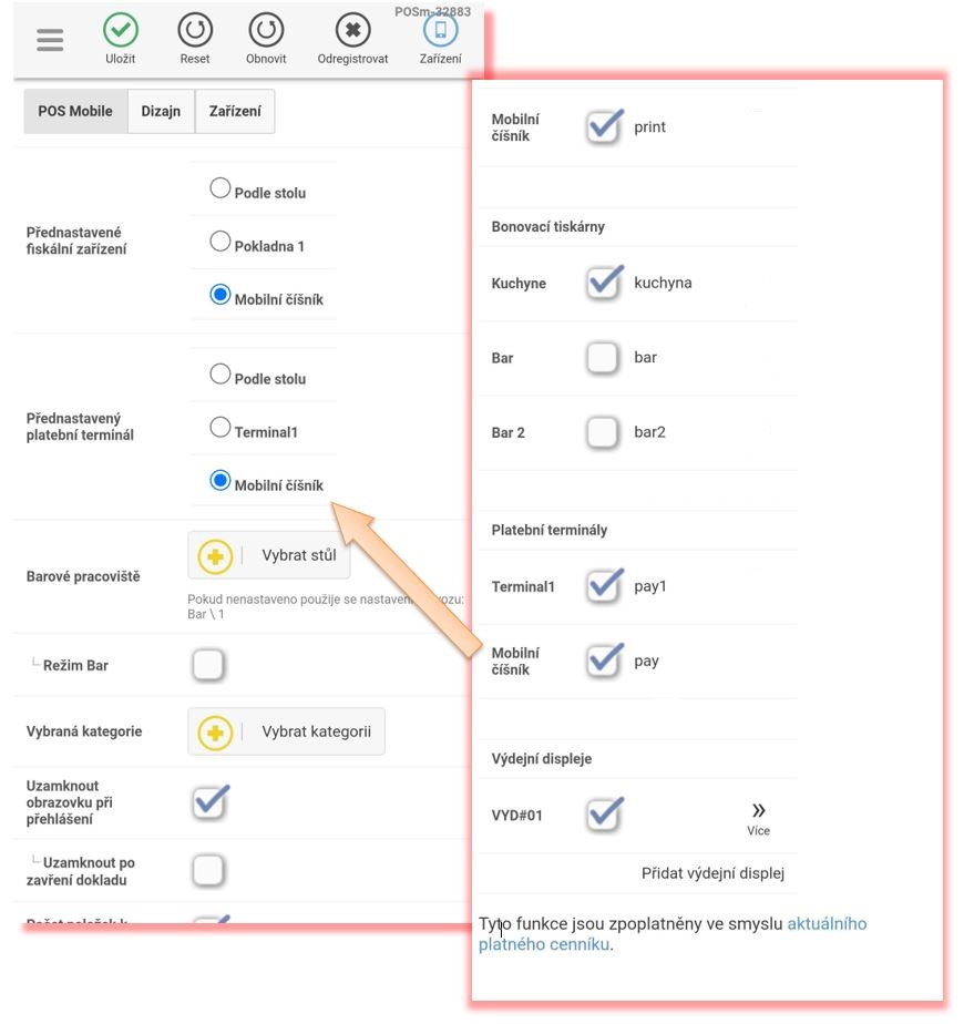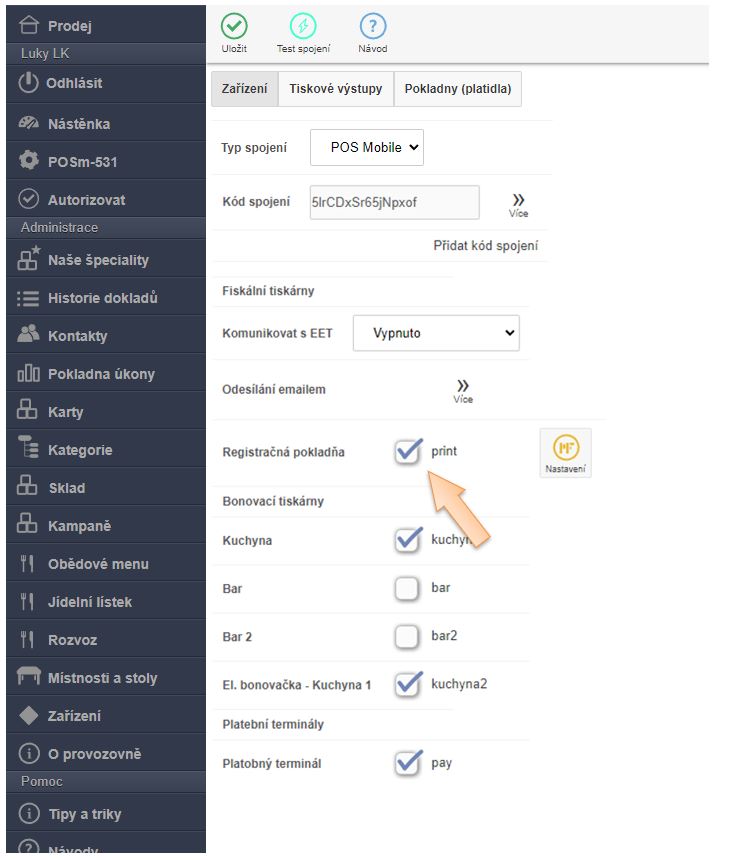 - Pozor, nezávisle sa nastavuje prednastavená účtenková tlačiareň a platobný terminál.