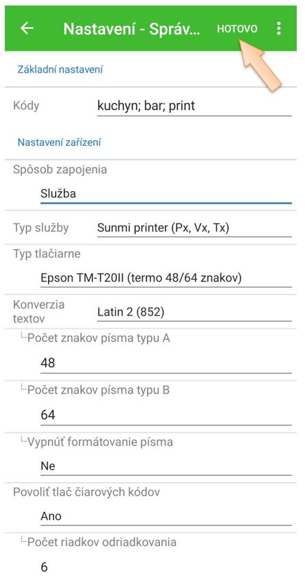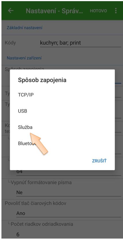 - V časti Spôsob zapojenia na zariadeniach Sunmi nastavte komunikáciu cez Služba.