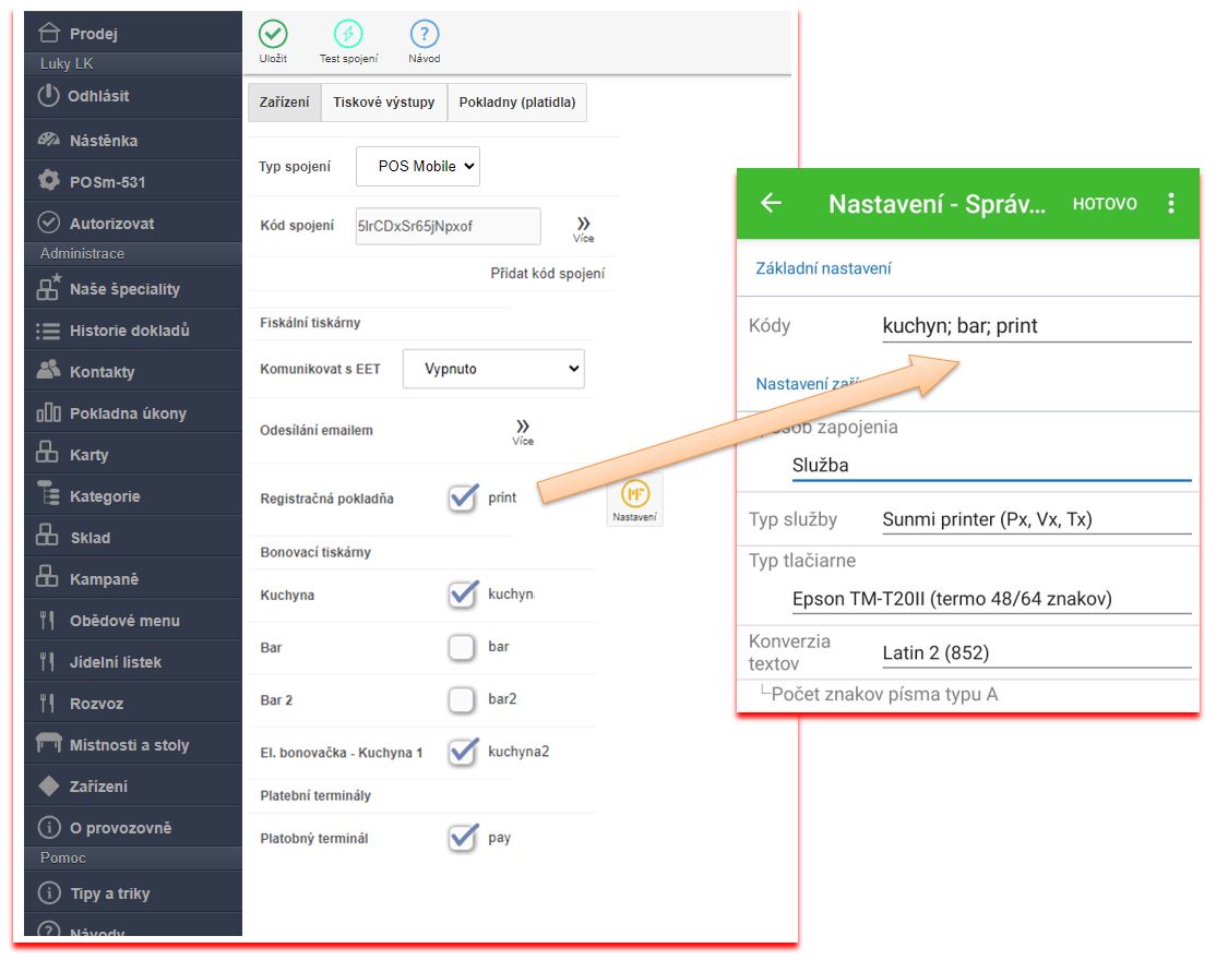 - Kód tlačového zariadenia - kód zariadenia, na ktorom sa má potvrdenie tlačiť. Ak nie je nastavené iné zariadenie, tlačí sa na danom zariadení. Na tomto zariadení sa budú tlačiť aj uzávierky zariadenia.