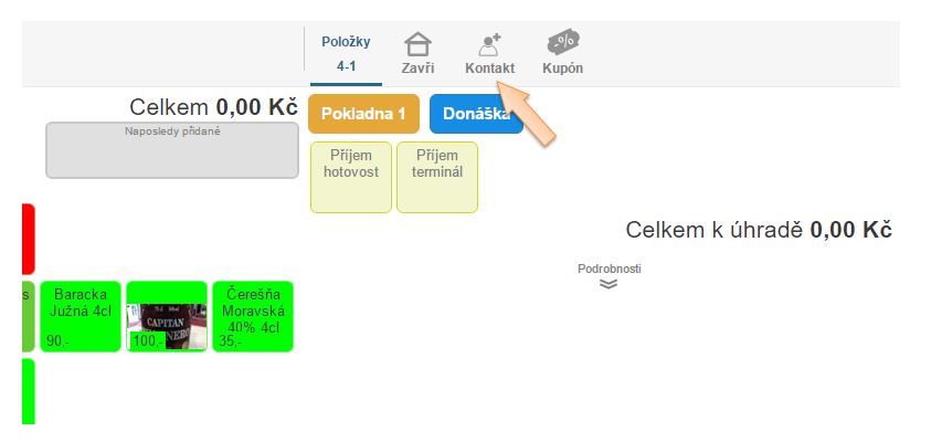- Ručným zadaním čísla karty - v novom doklade kliknite na tlačidlo Kontakt a začnite písať číslo zákazníckej karty.