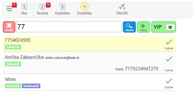 - Ak sa zákaznícka karta nachádza v databáze, aplikácia kontakt automaticky vyberie a priradí ho na doklad.