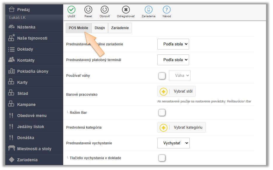 - V záložke POS Mobile upravte v spodnej časti nastavenia: