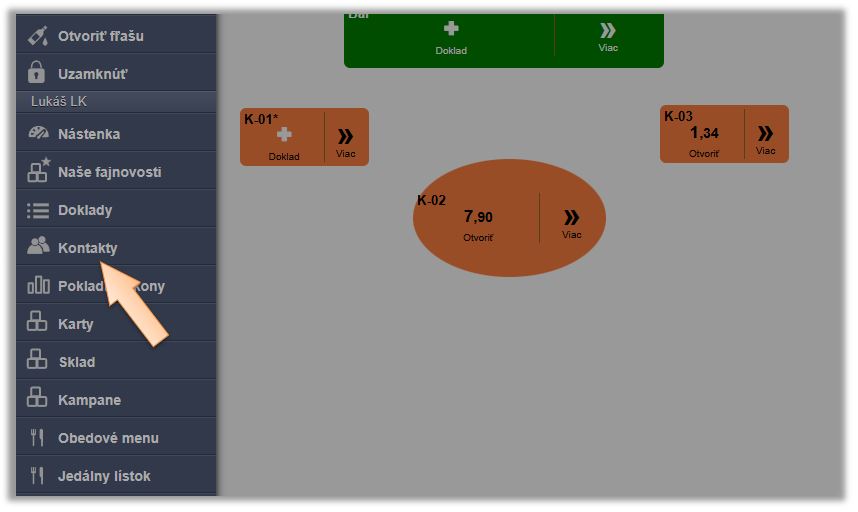 Vzhľadom k tomu, že sme v predchádzajúcom kroku nastavili, že údaj zosnímaný RFID čítačkou má systém hľadať automaticky v kontaktoch, stačí, ak má obsluha rozúčtovaný účet a zákazník priloží identifikátor. Systém vie, že údaj do systému prišiel z čítačky kariet a má kontakt hľadať v zozname. Nie je tak potrebné, aby obsluha mala právo na manuálne vyberanie kontaktov. Tým sa zároveň zabezpečí, že prípadná zľava na kontakt bude aplikovaná skutočne len v čase, kedy je zákazník v podniku a obsluha nevie zľavy daného zákazníka prípadne aplikovať na iné, otvorené účty.